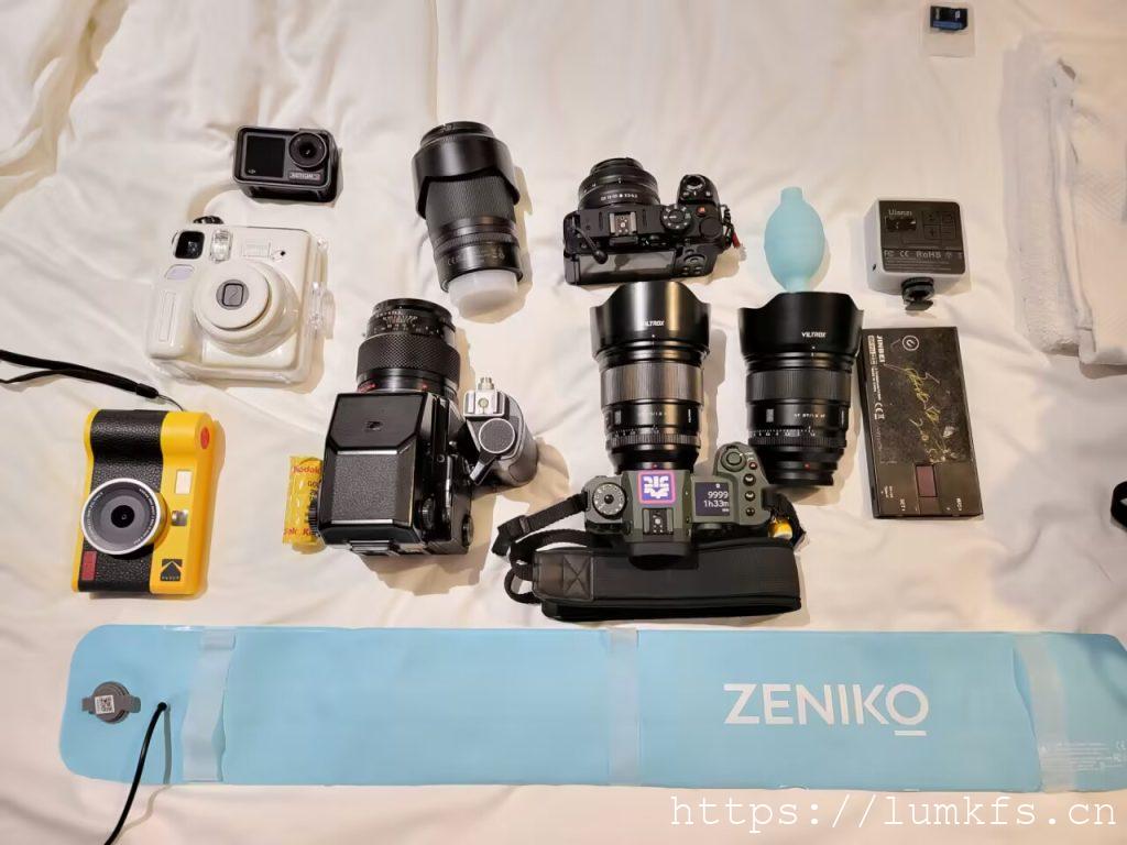因为自己已经充分理解了去BW玩还是要轻便为主,然后考虑到还是要能够简单拍一些东西,所以就舍弃了原先的SMDV柔光箱搭配斯莫格60w常亮灯的方案,选择了轻便的插电气柱灯,这次选择的是ZENIKO的80CM灯加上一个小板灯,就简单集邮来说已经足够了;相机这次带上了自己的X-H2和两颗唯卓仕的F1.2,27mm和75mm,这套万金油搭配真的屡试不爽。另外,这次也是突发奇想,带上了朋友的勃朗尼卡ETR,搭配150mmF4,这次就是打算简单重温一下120胶片,基本拍的是黑白卷,有几张金200的。